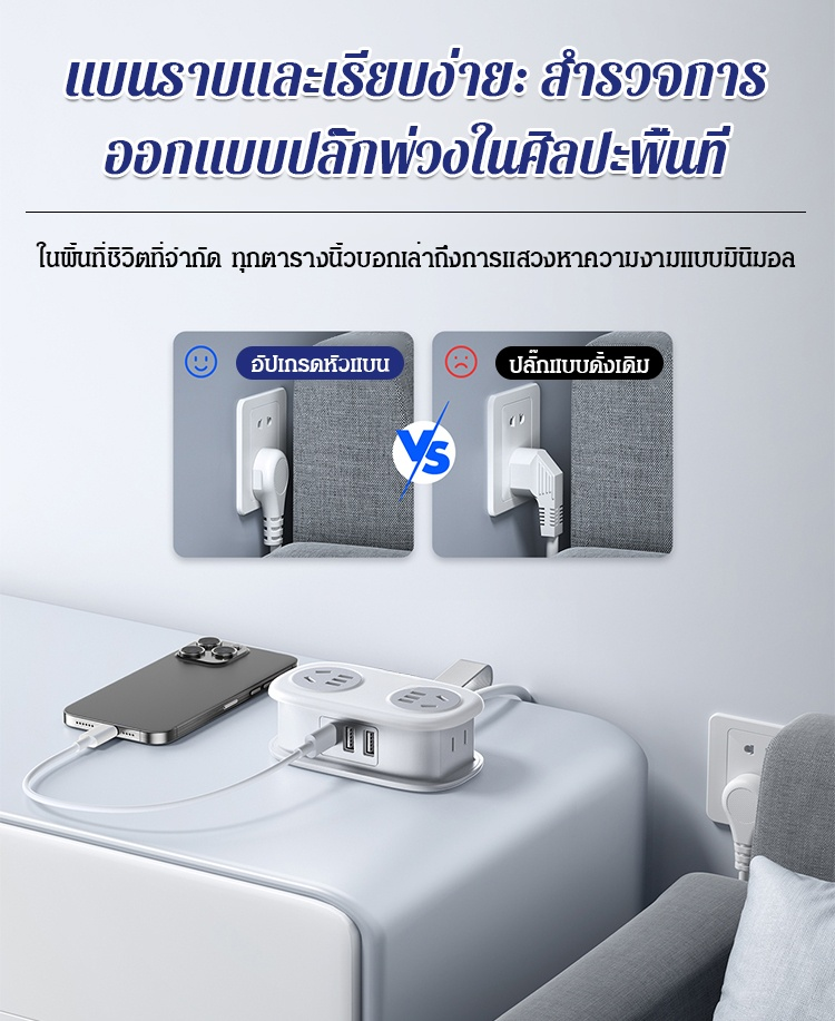 🔌 ปลั๊กไฟพกพาอเนกประสงค์ ขนาดกะทัดรัด พกพาสะดวก ใช้งานได้ทุกที่!