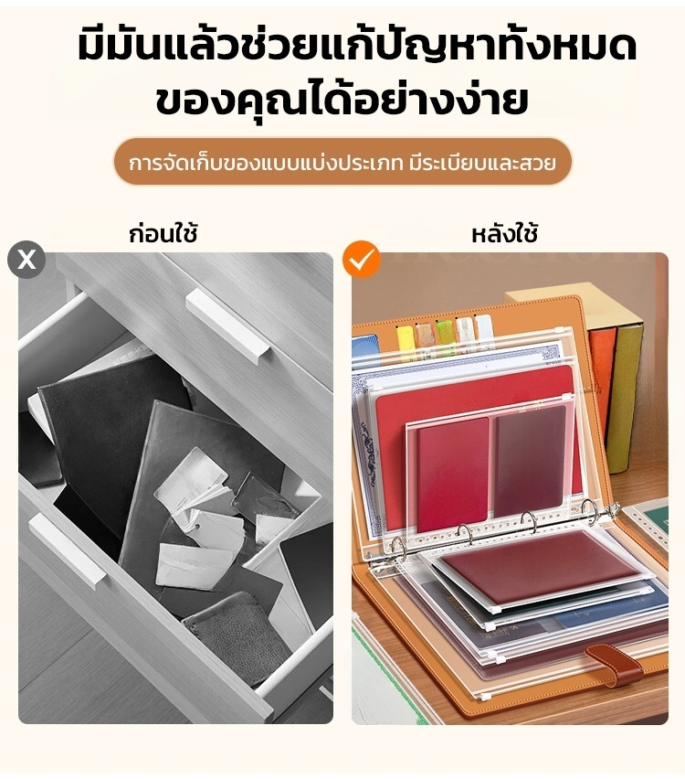 ปกทั้งหมด 12ช่อง+ A4 B5 A5แต่ละอย่าง3ช่อง+ช่องใส่บัตร A6แบบ3ช่อง